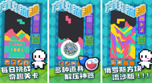 创新融合俄罗斯方块与流沙物理机制的益智闯关游戏。关卡按难度划分为初级、中级、高级及特殊挑战模式。核心规则为:方块落地后会迅速转化为流沙,并沿设定方向流动;玩家需预判流沙扩散路径,精准填充指定目标区域以完成消除。该机制对空间推理能力与瞬时反应提出双重考验,配合精致像素画面、明快BGM与细腻音效反馈,营造出强沉浸感与解压体验。
