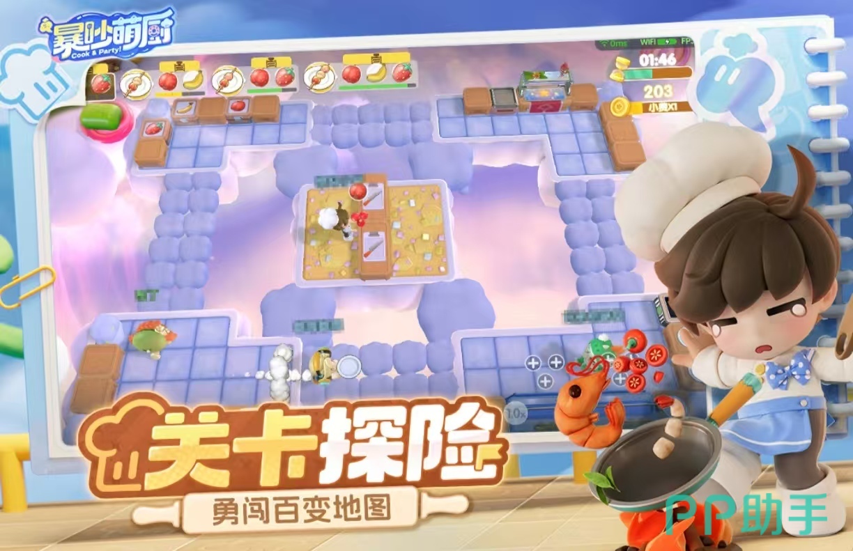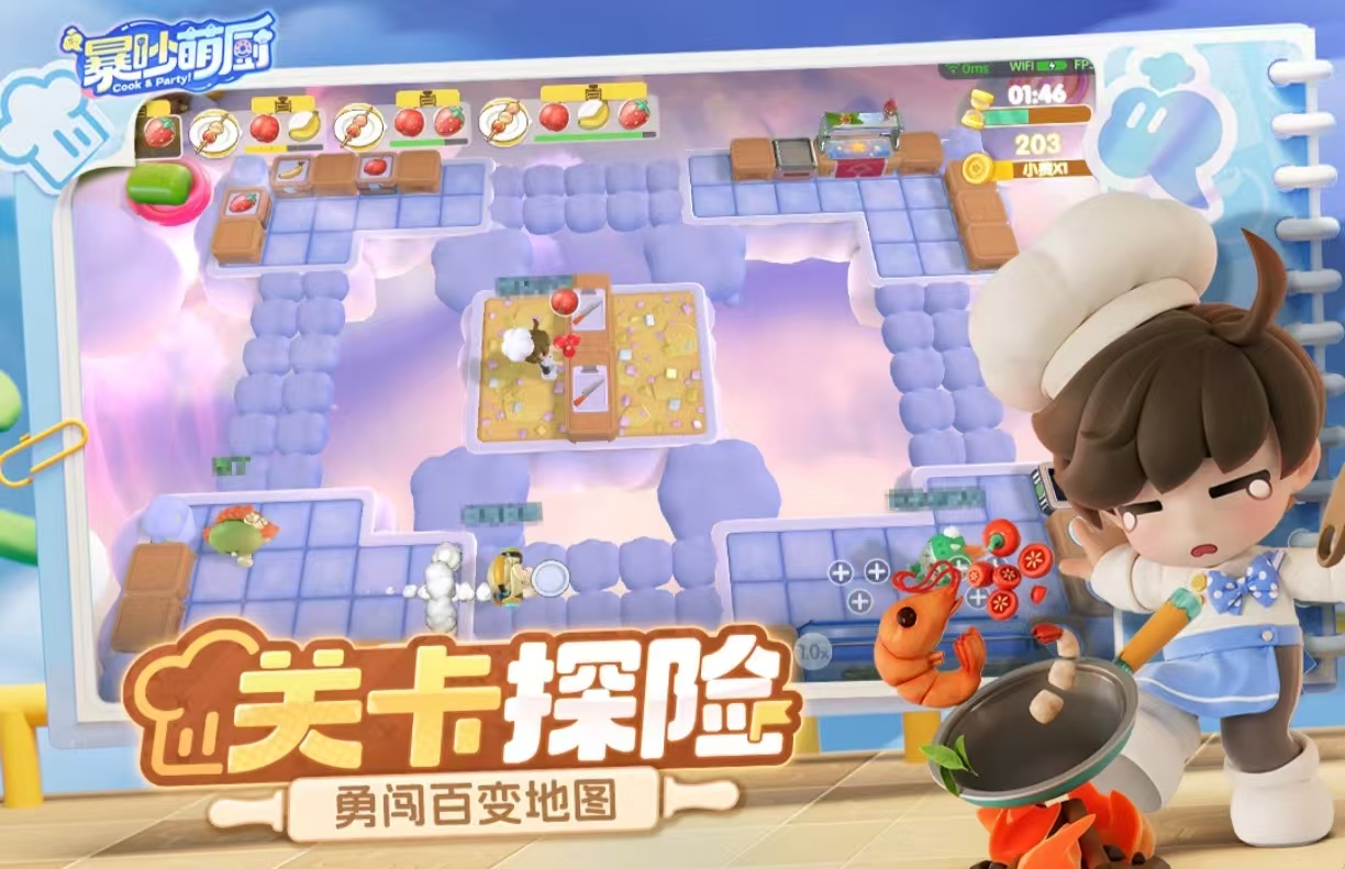 这是一款强调实时协作的模拟经营类游戏。玩家将联手打造梦幻美食王国,抵御外部势力侵扰。通过煎、烤、蒸、炸等多元烹饪操作制作料理,应对关卡中设置的传送带、升降台、旋转门等机关障碍。全程依赖双方节奏同步与分工配合,考验默契度与反应能力。