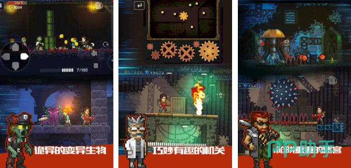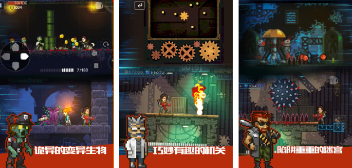 横版卷轴式像素风丧尸生存射击游戏,主角为可自由移动的像素化幸存者,支持多类型武器切换。射击手感扎实,角色机动性优于同类产品。场景中遍布变异生物与机关陷阱,部分关卡采用迷宫式布局,BOSS僵尸随机刷新,考验玩家路线规划与资源管理能力,整体生存压力设计紧凑合理。