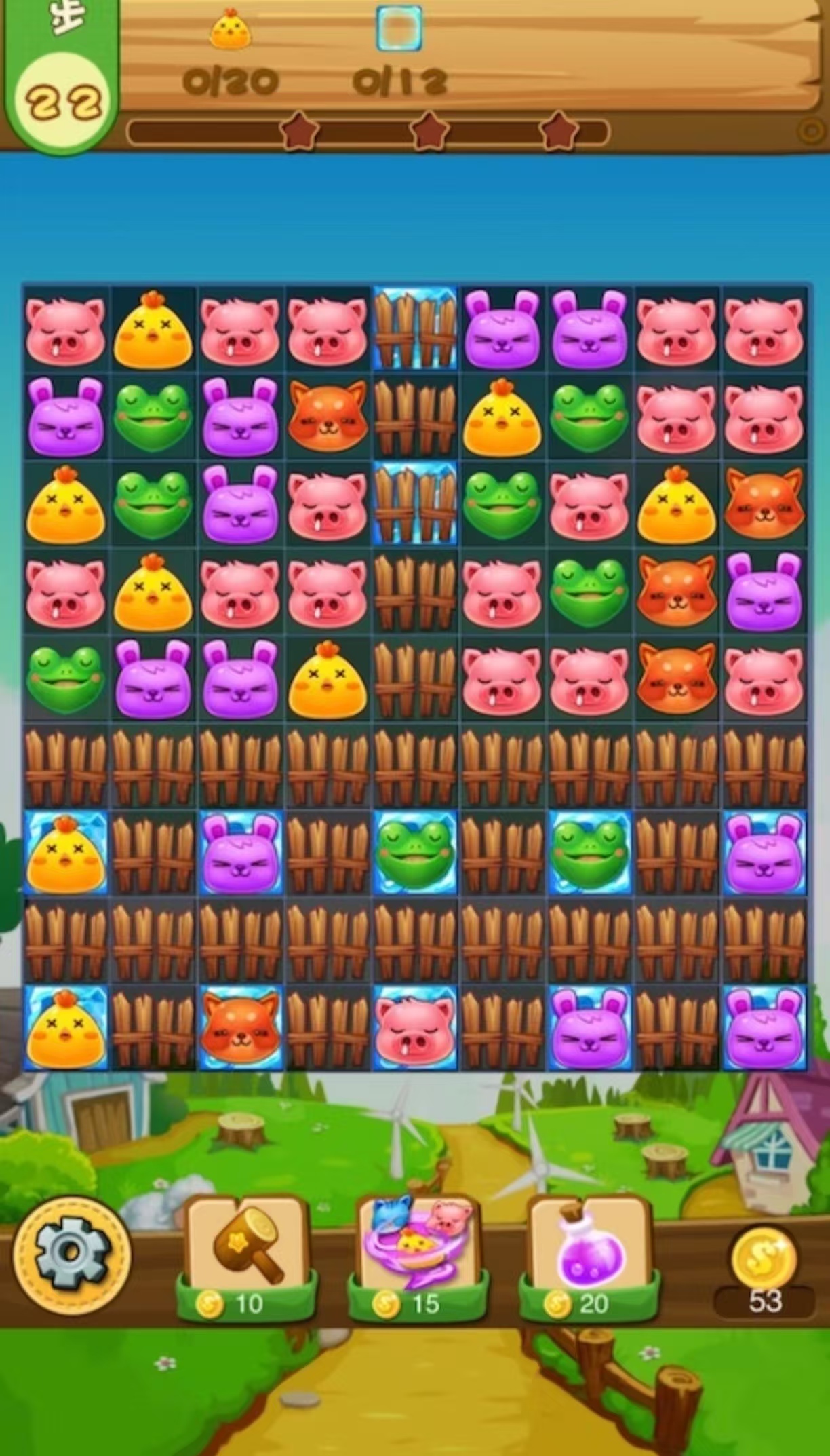 本作采用经典三消机制,每关布局随机生成,玩家需根据目标要求(如收集指定动物、清除障碍等)规划点击顺序。底部常驻道具栏支持金币兑换使用,通关奖励金币可积累用于后续关卡辅助。整体节奏明快,适合碎片化时间游玩。