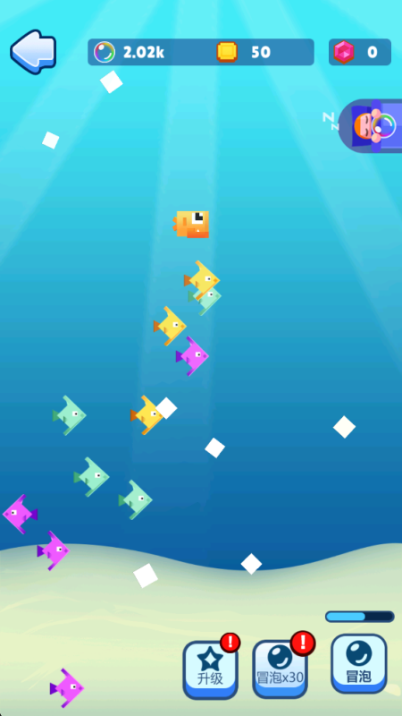 以高饱和度卡通渲染风格打造沉浸式海底世界,围绕“小鱼成长”主线展开策略性生存玩法。核心机制沿用经典弱肉强食规则,玩家需规划捕食路径实现体型跃迁;同步引入宝藏探索系统,驱动玩家深入未知海域触发随机事件与隐藏奖励。