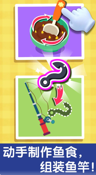 围绕淡水渔场展开,涵盖鱼竿组装、鱼饵配制、抛竿收线、种类识别等完整垂钓环节。孩子可在无风险虚拟环境中了解常见淡水鱼类特征与栖息习性,同时在“等待咬钩”的静默时段训练延迟满足能力与持续注意力,实现动手能力与心理素质的双重发展。