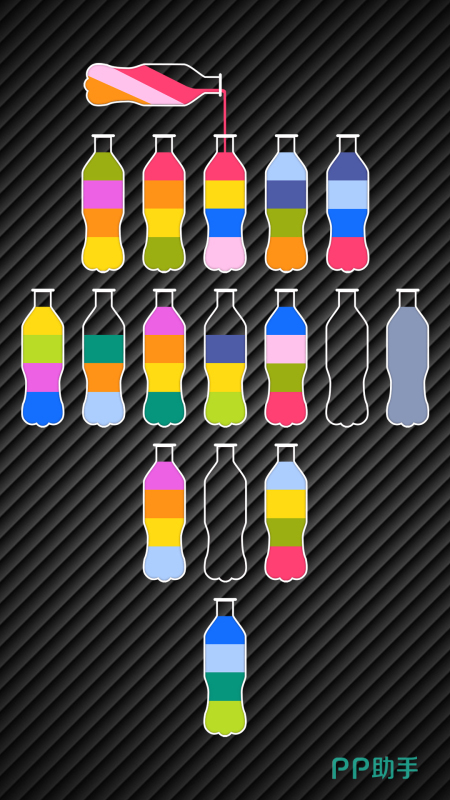 经典物理逻辑解谜玩法,目标为通过倾倒、分流、混合等操作,将指定容量液体精准注入目标容器。关卡设计遵循由浅入深原则,后期引入虹吸、重力反转、相位切换等进阶机制。内置智能提示系统,支持分步引导与全局回溯,兼顾新手友好性与硬核解题深度。
