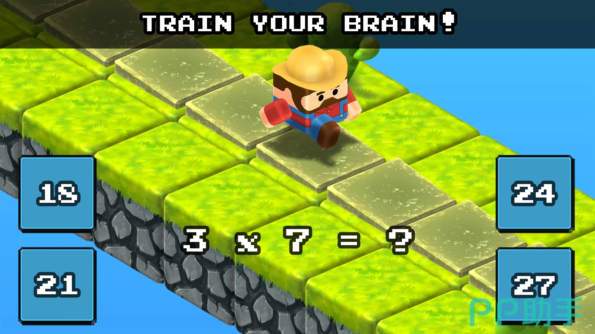 融合物理跳跃机制与数学答题逻辑的创新教具。玩家控制角色在悬浮平台间跳跃,每次起跳前需完成一道单选计算题,答对方可抵达目标平台。UI采用三维蒙版风格,视觉层次清晰;题目难度梯度设置合理,从个位数加减逐步过渡至带括号的两步运算,潜移默化锻炼心算能力与空间判断力。