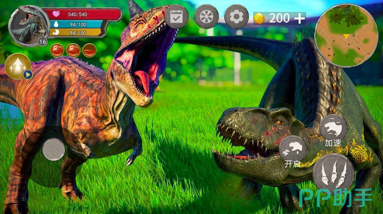 聚焦单体恐龙成长路径,提供30余种恐龙图鉴体系。从骨骼结构到呼吸节奏,从吼叫频谱到奔跑惯性,均基于古生物学研究进行参数化设计。虚拟摇杆+功能按键组合支持精细动作控制,包括伏击、撕咬、饮水、休憩等生存行为。战斗胜利后获取金币,用于强化咬合力、耐力值与环境感知能力,并接入实时健康状态监测模块。