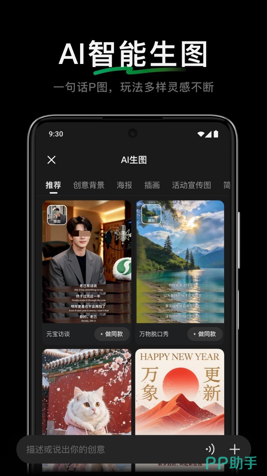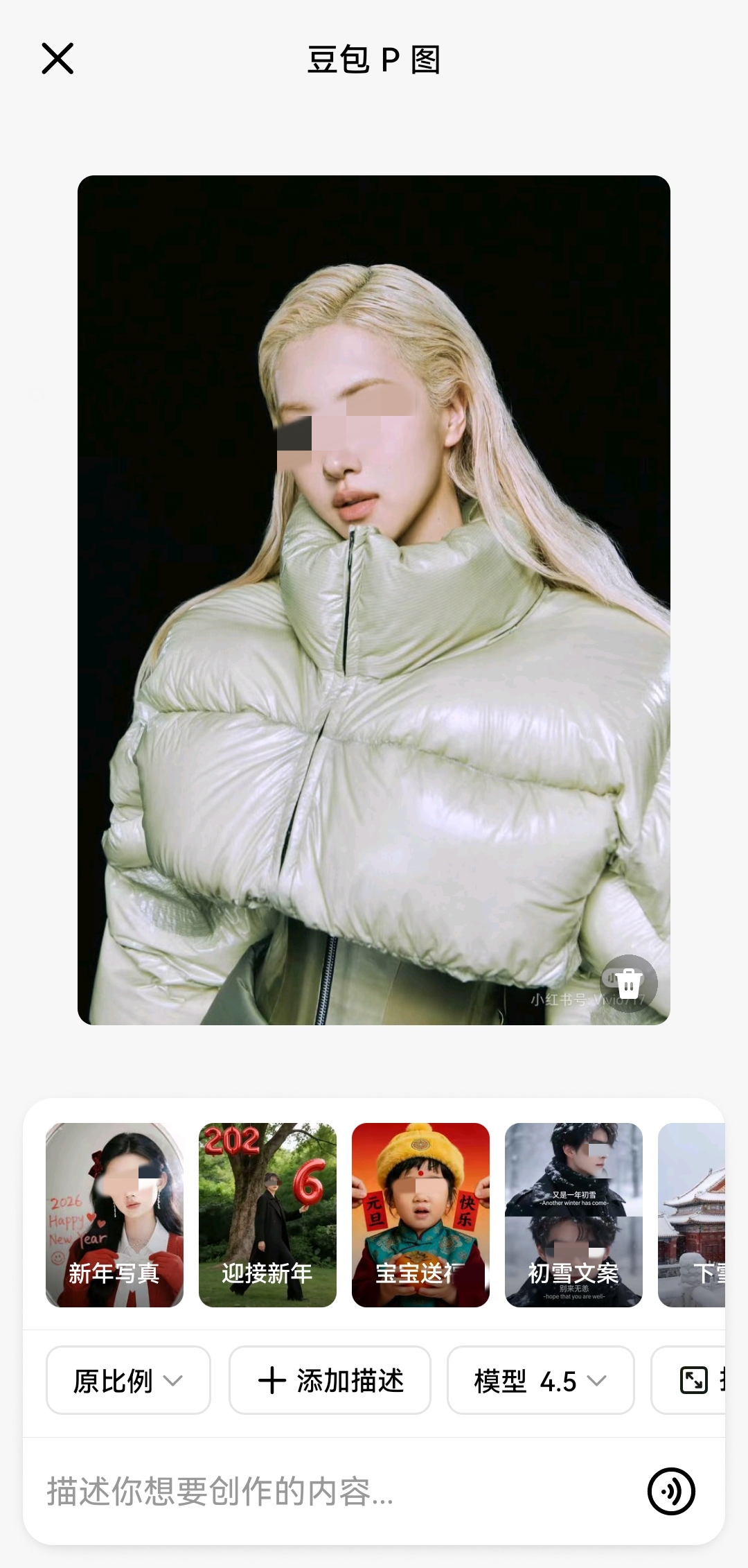 腾讯元宝同样是一个AI助手,AI的好处就是能帮我们实现一些复杂的、带点创意性的P图要求,比如“把阴天P成夕阳”“P上下雪时雪花飘落的场景”或者“帮我消除照片里的路人”, 它会根据你的描述去理解和执行。