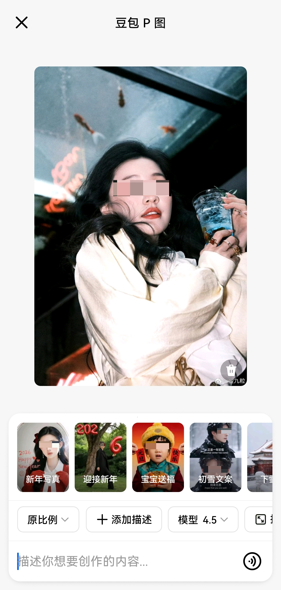 豆包也藏着实用的图片处理能力,找到搜索框上方的按钮豆包P图,输入指令,比如你想让豆包修复旧照,你可以给它下指令,例如:帮我生成图片:修复这张图片,重绘度60-70%”,它会调用AI模型进行处理,出来的效果还不错。