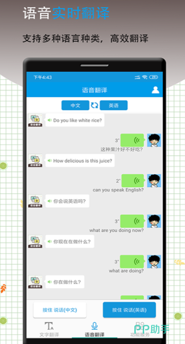 这个程序的名字是最常见的,它的设计思想是为了满足最常见和最即时的需要。程序接口一般都很简单,主要界面是一个很大的输入框。虽然在语言的种类和深度上,这款软件并不像一个万能的平台那么全面,但它的启动和翻译却是非常迅速的,没有任何的限制。它的声音输入和声音播放的速度很快,非常适用于街道上的问路和应急通讯。