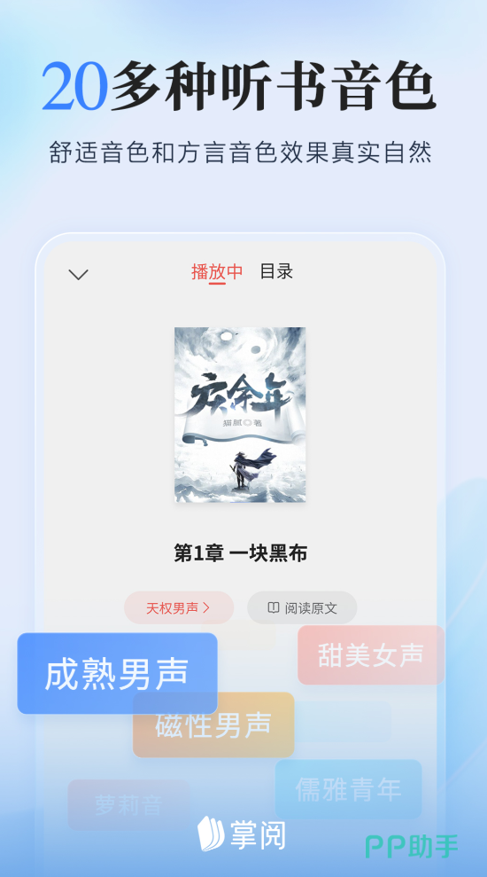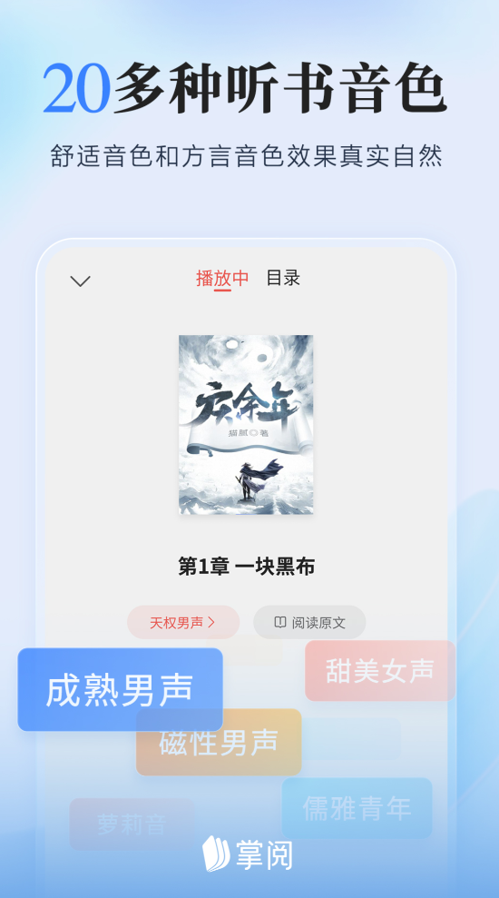 可听的语音读物有超过上百万种,正版授权原创的网文资源有780万,在资源数量方面遥遥领先于行业,很多在网络中被翻拍的”网剧“小说在这里都能找到原型,输入角色名还可模糊搜索小说的名称并进行听书,除小说之外还有社会、财经、娱乐等方面的读物可听,音质也是十分的出色。