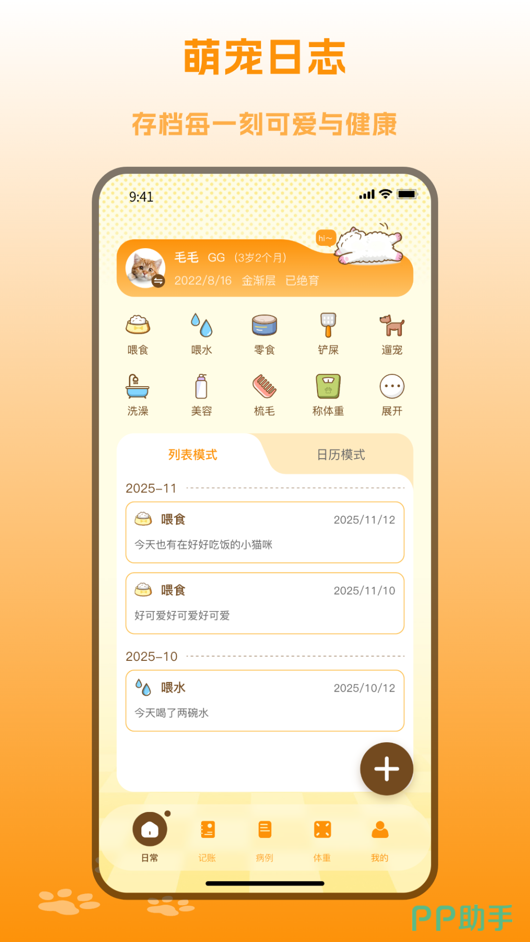 宠物记录可以帮助我们很好的记录自己宠物的一些状况,比如最近一次喂食是什么时候、最近一次洗澡是什么时候。这样我们将宠物托付给托运人员的时候,便可以让其同步我们宠物的近况,从而更方便托运人员对我们的宠物有个更好的照顾。