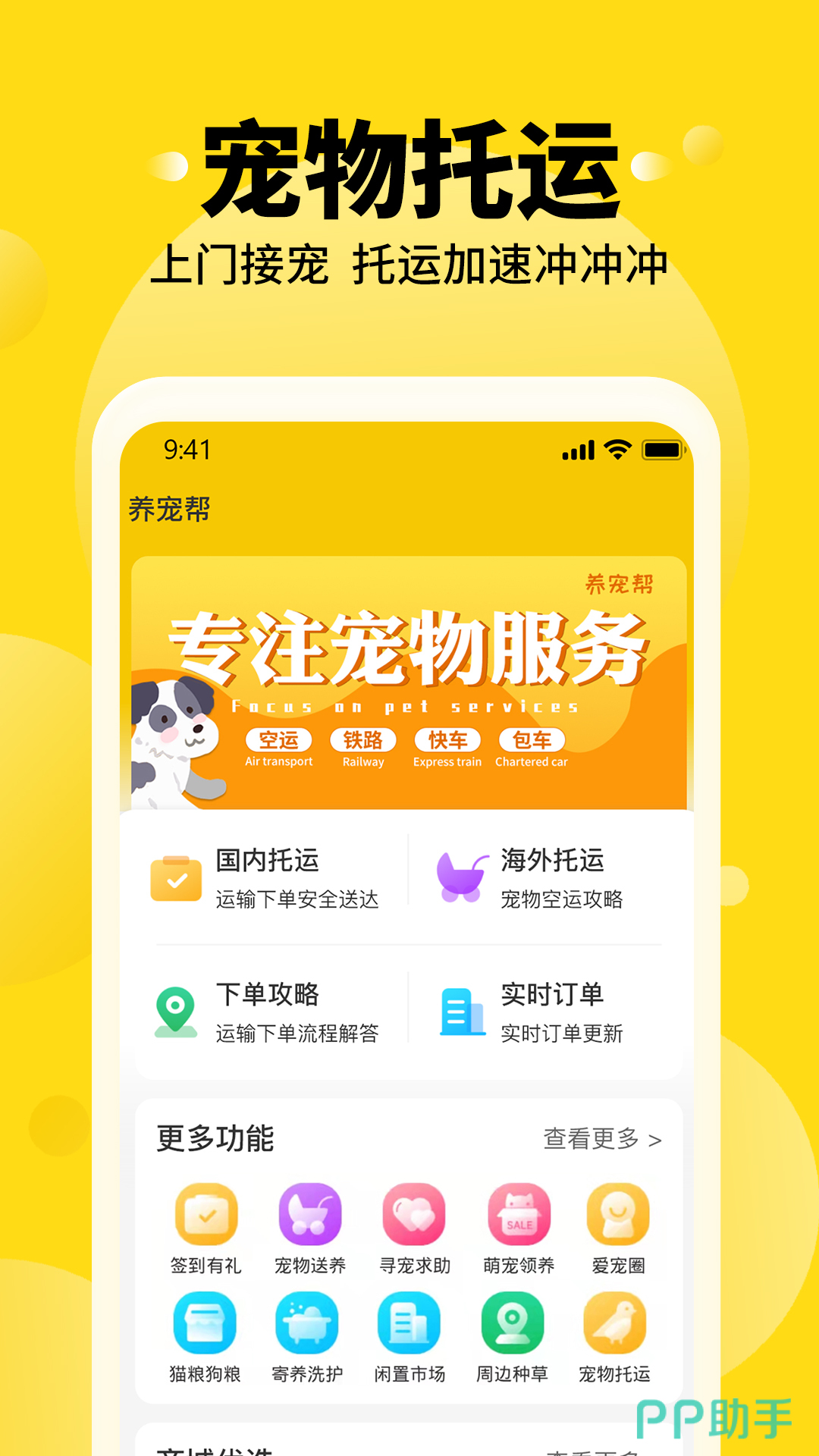 养宠帮宠物托运不仅能帮助广大用户完成国内的宠物托运,同时还可以帮助用户进行海外的宠物托运。同时APP中还可以选择宠物托运的方式,汽车、铁路等形式均可托运,更有专人负责宠物的安全,确保宠物可以安全快捷的托运到指定的位置。