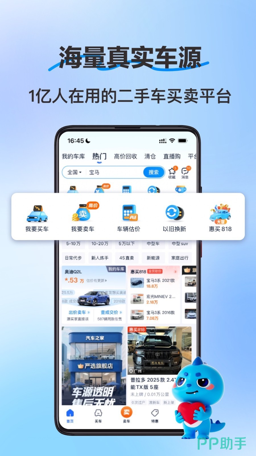 作为知名平台汽车之家旗下的业务交易软件,得益于强大用户数据和深度专业性以及雄厚资金作为后盾,成为一个非常省心称心的二手车交易软件。拥有专业审核团队进行把控,可以满足购车需求,并且保证安全可靠。自身提供的都是经过严格检测的车源,非常真实。
