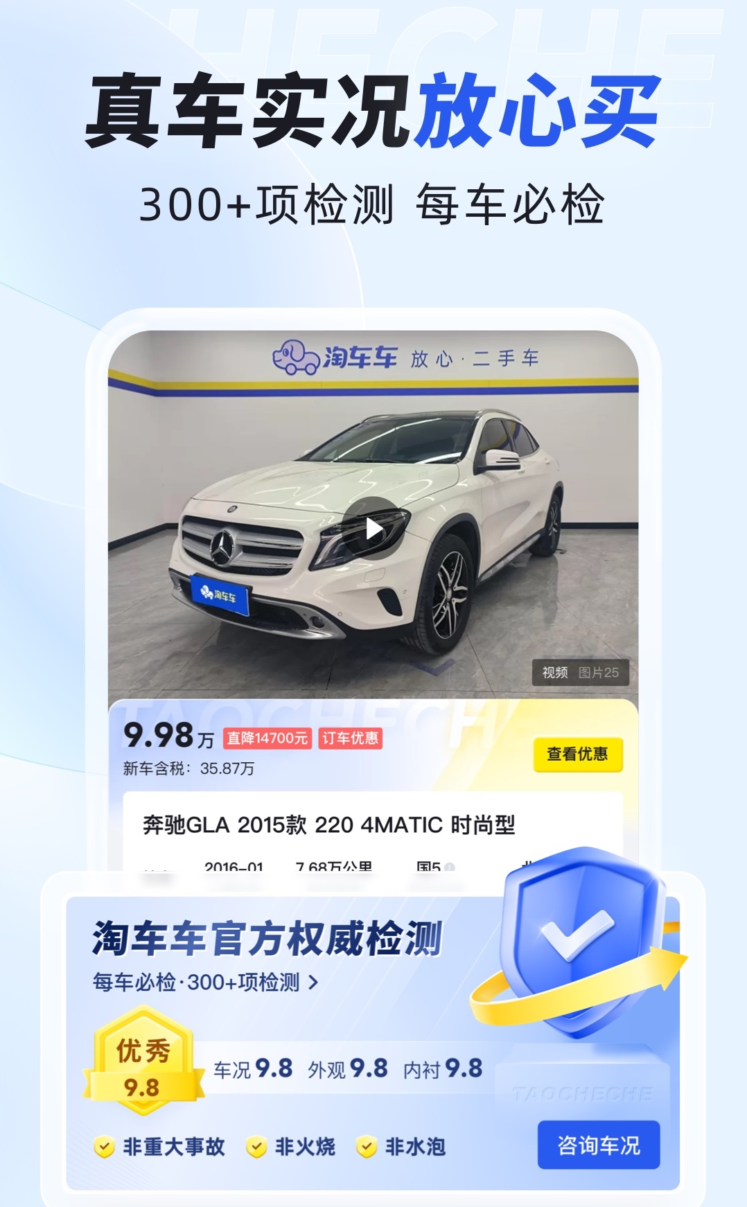 在这里所出售的车辆都是采用统一的标准进行采购,拥有相当高的品质。还有专业化的检测体系,进行多项质量监测,所生成的报告可以随时点击查看。每一辆车都是透明的车况,买车才能更加放心,在门店中还能直接进行试驾预约看实车。