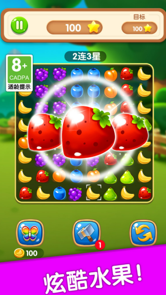《果蔬消消乐》是连接三个及以上同种类果蔬方块,直线、斜线排列均可消除,消除一组即可获得积分,果蔬造型逼真、颜色和谐,视觉体验极佳,关卡设计独特,优化关卡目标,新增像素画拼图、宝石收集等特色玩法,避免单调,看着新鲜果蔬消一消,连心情都跟着变得清爽起来。