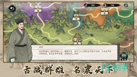 扮演着游戏里面的一名游士,自由的行走在春秋战国的时代之下,游历不同的诸侯国家,《诸子百家模拟器》这款手游就是要求玩家们去进行学术上的互动,与不同的思想家进行深入的对战,当然玩法上还是比较注重玩家们的学识储备的,临场的选择可以为玩家们得到不同的最终效果,期待玩家们的体会呢。