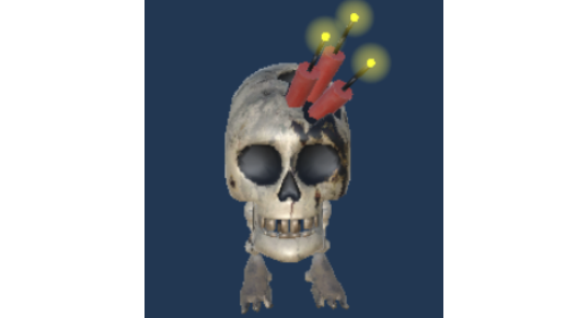 2、骷髅炸弹:外观为插有蜡烛的骷髅头,常以三体编队形式缓速移动。具备定时自爆机制,倒计时结束后造成范围伤害。最优解为使用左键拾取后立即投掷至远处空地或敌对目标身上,利用其爆炸特性完成反制,无需近战接触。