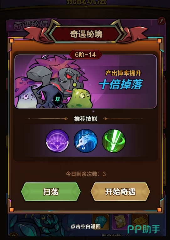 该玩法在角色通关1阶-5关后自动激活,与主线历练系统同步开启。每日提供三次挑战机会,支持一键扫荡,操作便捷;其关卡难度动态匹配玩家当前通关的最高普通关卡——例如玩家已攻克3阶-15,则奇遇秘境对应难度即为3阶-15,但所有装备掉落概率提升至原关卡的10倍。尤其值得注意的是,太古、远古品质装备在此副本中出现频率显著高于其他途径,是全服玩家稳定获取高阶装备的核心渠道。务必确保每日三次挑战全部完成,否则将直接损失大量成长资源。