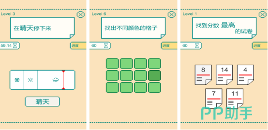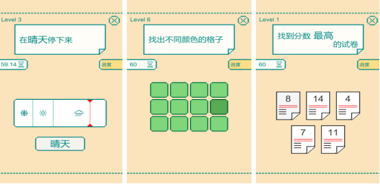 专注短时高效认知训练,内置16种差异化玩法与32个渐进式关卡。典型任务要求在密集绿色图案中识别细微色差格,通过限时视觉搜索强化工作记忆容量与细节分辨能力,符合神经科学推荐的微训练原则。