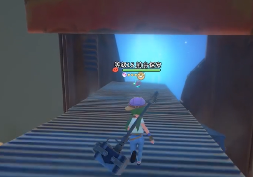 紧接着,我们继续往前走,会看到一个悬崖壁,我们顺着悬崖壁往前走一段路,会发现一个蓝色的楼梯一直通到下面。我们顺着楼梯走,一路上会遇到很多小怪。小伙伴们可以选择清理一下,当然,如果自己的等级不高,并且非常赶时间的话,小编这里推荐是不要管它们,一直往下走就可以了。到了最下面之后,我们能看见悬崖底下有一个散发着蓝光的地方,我们消灭掉它前面的前台保安之后,靠近就能交互,会发现这是进入失乐园商场,我们进去之后,会解锁新的任务,也就是寻找失乐园能源核心,并找到我们需要的任务道具“奇怪的能源核心”。在进入之后,我们就需要打失乐园的机器猫了!小伙伴们一定要做好准备,带好血药等道具。