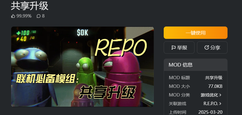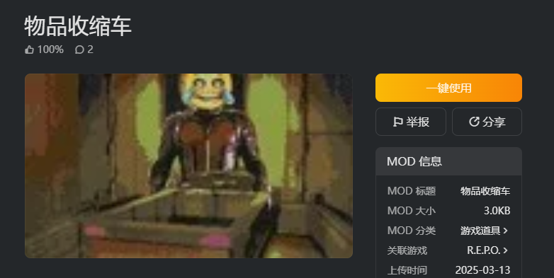 恐怖游戏一直以来就以惊悚气氛吸引玩家,这个小游戏就创新了一下,加入搞笑的表情包元素,还赋予玩家回收员的身份,就算是在闹鬼区域玩,也不会那么害怕。小制作的mod玩法可是很有趣的,REPO模组大全列表马上就介绍给大家,有需求的小伙伴就抓紧下载,让自己的游戏变得更轻松。