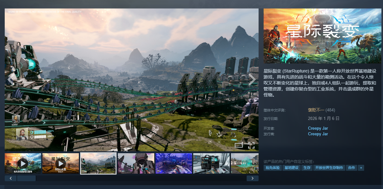 综上,《星际裂变》已于2026年1月6日正式开启Steam抢先体验。这一阶段不仅标志着玩家可率先踏上“桃花源-7”的重建之路,也为后续版本迭代预留了充分的社区反馈与功能拓展空间。当前正是加入这场融合压迫感叙事、深度建造逻辑与动态世界演化的星际生存实践的最佳窗口期。