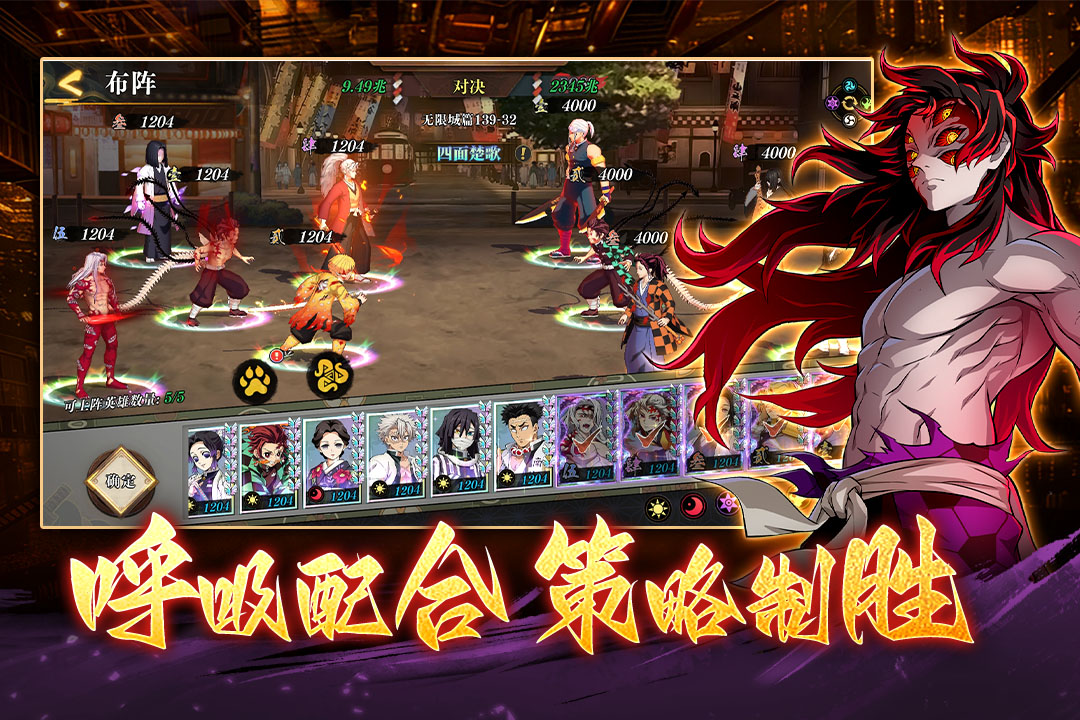 本作是获得《鬼灭之刃》正版授权的二次元策略卡牌手游,完整复刻原作关键剧情脉络,从鳞泷左近次的呼吸法训练,直至无限城最终决战均有呈现。玩家可招募炭治郎、祢豆子等经典角色组建五人小队参与战斗,角色间存在明确属性克制关系,并支持手动/自动双模式切换。创新加入“记忆回廊”系统,在重要剧情节点开放玩家选择权,由此触发多线分支叙事,推动剧情走向发生实质性变化。