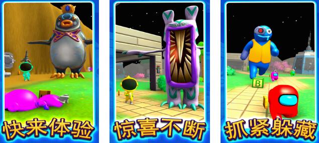 整个游戏并没有固定的场景,因为游戏里面每一张地图都有专属的小彩蛋部分场景可以主动互动,能够让玩家触发场景机关,从而暴露躲藏者的位置,虽说整个游戏是以躲猫猫作为核心所在,但是它跟传统的躲猫猫也会有一定的区别,玩家在体验游戏的时候,整体的节奏感比较轻快,再加上没有复杂的操作,玩家此时此刻要为了自己的身份,尽可能的达到目的,才能够代表玩家胜利。