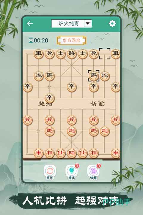 《象棋》融合楚汉相争的历史意象,以“车马炮士象将”构建虚拟战场。游戏集成经典古谱残局逾两百局,AI引擎支持多难度残局推演;提供复盘回放、招法标注、模板化开局学习等功能,帮助玩家系统掌握布局逻辑与中残局转换技巧。