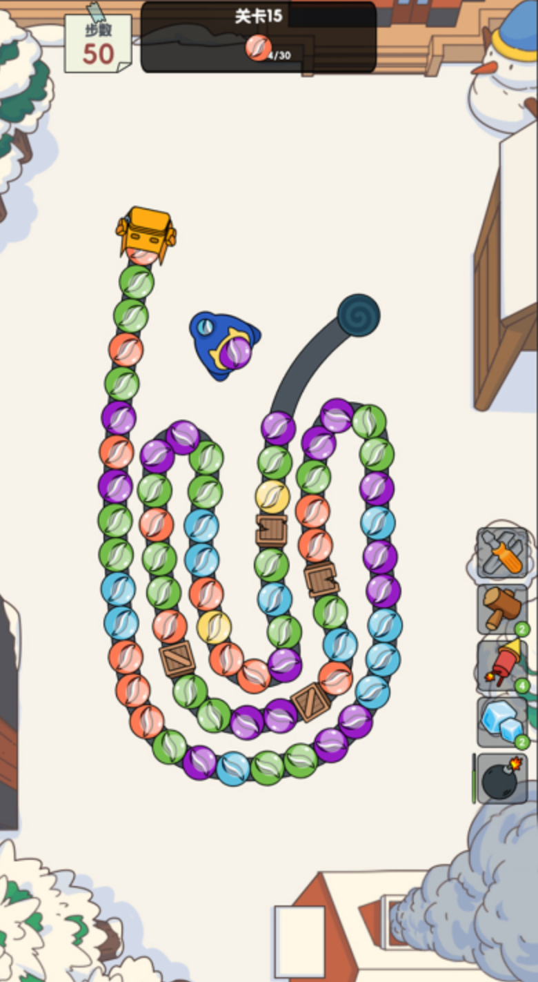 采用萌系视觉语言与精细球体建模,强化消除过程的治愈体验。彩球表面具备真实光泽反射效果,配合玻璃质感碰撞音效,操作手感清晰可感。关卡设计融合场景化叙事,Boss战需识别弱点属性进行针对性消除,并非单纯堆叠数量。通关奖励碎片可用于建筑修复系统,逐步解锁新技能与角色外观。无障碍支持完善,为色觉障碍用户提供图形标识,亦配备辅助瞄准功能以降低操作门槛。