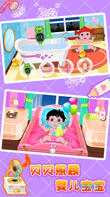 本作以明亮柔和的卡通画风构建沉浸式育儿场景,通过模拟喂奶、换尿布、哄睡等日常照护流程,帮助儿童建立基础生活认知。所有交互动作均基于点击与拖拽完成,无文字依赖,适配3岁以上用户。界面元素布局清晰,关键操作区域设有动态提示,降低学习成本。
