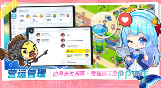 模拟经营类作品,玩家身份为水族馆馆长,负责场馆建设、物种饲养与游客服务全流程管理。游戏中包含超百种海洋生物图鉴,其中美人鱼角色兼具观赏性与功能性,可通过升级亲密度解锁专属互动事件。支持自由规划展区布局、建造主题展馆与扩建配套设施,通过提升游客满意度与场馆评级来获取持续收益,打造个性化海洋主题乐园。