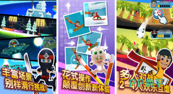 以真实物理反馈与电影级3D建模见长的滑雪主题跑酷作品。场景设定突破常规,既有岩浆奔涌、植被焦灼的侏罗纪遗迹,也有冰川覆盖、企鹅巡弋的极地高峰,地形变化驱动操作逻辑持续演进。支持2至4人本地Wi-Fi联机对战,强调实时反应与路线博弈,在高速滑行中考验玩家的空间预判与微操精度。