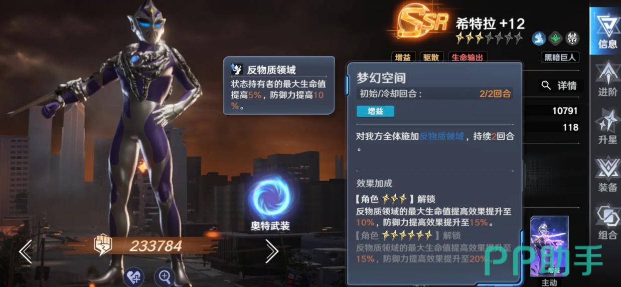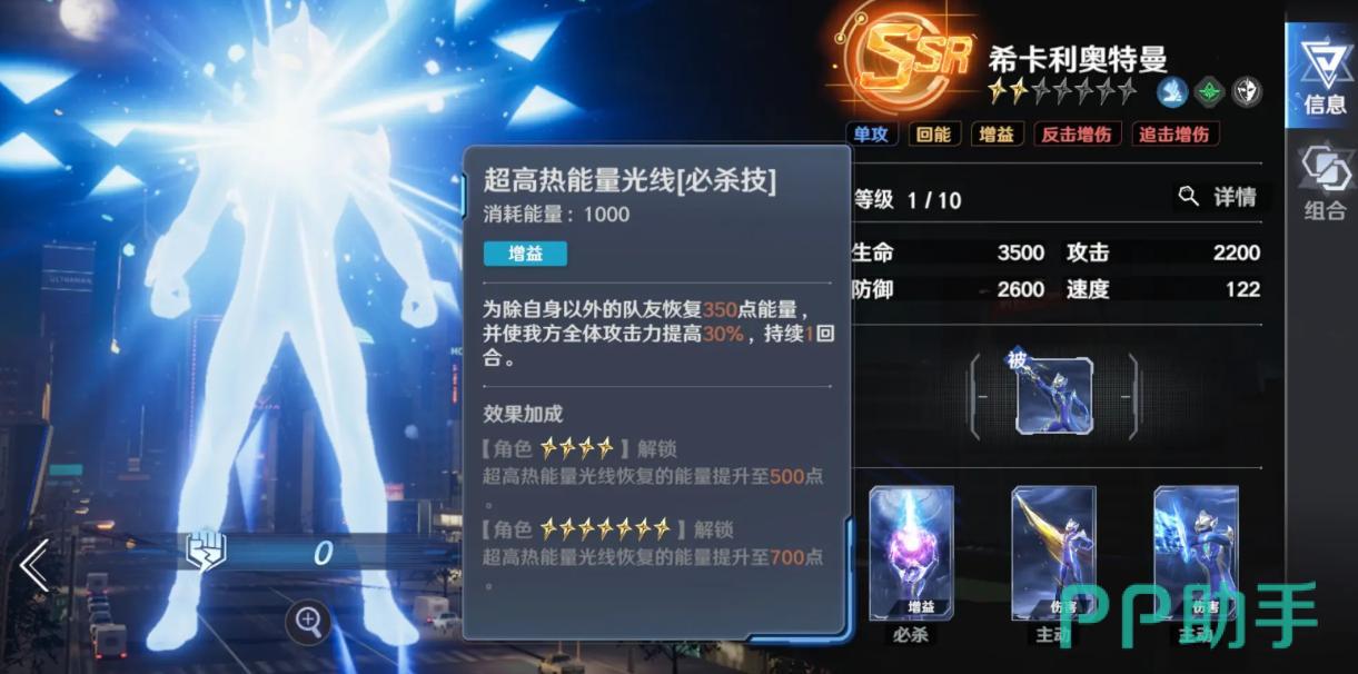 普通赛罗——紫阶角色中综合强度最突出的存在。群体伤害倍率达300%,且具备“击杀后无限追击”机制,实际战斗中常实现伪群攻效果;当目标携带减益状态时,单体技能倍率提升至510%,兼顾清杂与精准打击。培养周期短、成本可控,是平民与微氪玩家首选的核心输出位。