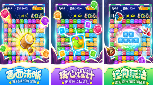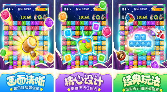 在传统三消机制基础上拓展策略维度的升级作品,新增“星星联盟”等融合玩法,将消除逻辑与方块堆叠策略相结合。画质全面优化,特效细腻流畅,关卡设计兼顾新手引导与高手挑战,满足不同水平玩家对策略深度与视觉体验的双重需求。