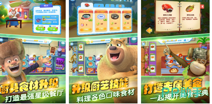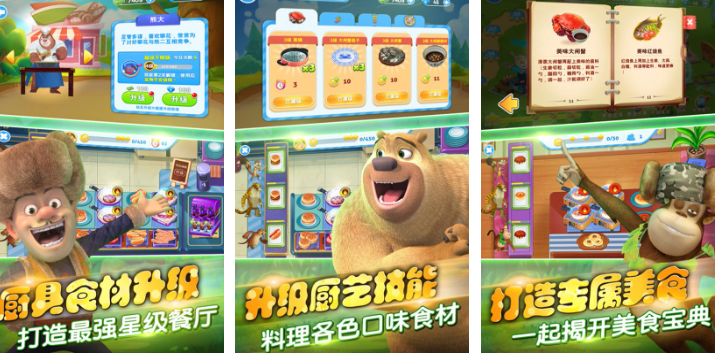 这是一款融合模拟经营与轻度RPG元素的创新作品。玩家化身森林厨房主理人,从种植食材、采集野果到烹饪菜肴全程参与。游戏内置数十种原创食谱,随厨艺等级提升解锁高级料理;食材可通过任务、探索、好友互助等方式获取,烹饪过程采用可视化操作界面,动作流畅且富有反馈感。剧情穿插熊出没系列经典对白与彩蛋,增强IP认同感。