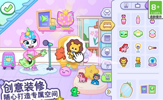 灵感源自儿童热门教具“安静书”,以库洛米IP为视觉主体,融合点击、拖拽、拼合等触控交互逻辑。玩法上整合装扮、解谜、建造与三消四大模块:通过消除关卡获取建材资源,逐步搭建并装饰专属小屋;界面采用柔和粉彩色系,操作反馈灵敏,零学习成本,适配全年龄段用户。