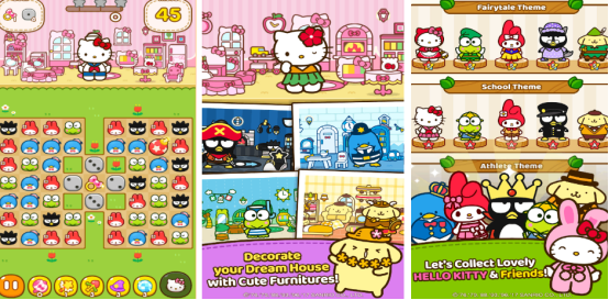 除主角凯蒂猫外,美乐蒂、大耳狗等三丽鸥人气角色悉数登场,构成完整好友社交图谱。游戏设有超数百个结构各异的关卡,难度梯度清晰,兼顾新手引导与高阶策略性。底层采用经典三消机制,在限定步数内达成指定消除目标,如收集特定图案、清除障碍物或累积分数,每关均配有独立视觉主题与音效反馈。