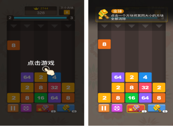 融合2048数字合成机制的轻量级消除游戏。界面简洁适配单手操作,玩家通过滑动合并相同数值方块(如2→4→8→16……),不断累积更高数字以达成关卡目标分数。内置多种功能道具,可在关键节点辅助通关或提升得分效率,兼具逻辑性与休闲感。