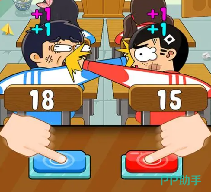 以校园课堂为背景,还原“同桌互坑”经典场景。双方各持红蓝按钮,在老师巡视间隙完成点击挑战,比拼得分效率。过程中需兼顾躲避监管、应对随机事件及对方干扰,多课堂地图带来差异化体验。节奏明快,代入感强,是新年期间活跃气氛的理想之选。