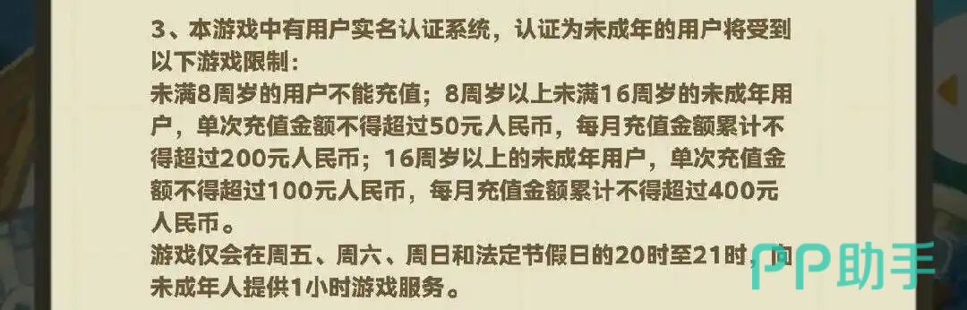 针对8至16周岁年龄段的未成年用户,单次充值上限为50元人民币,月累计充值总额不得超过200元;年满16周岁但未满18周岁的用户,单次充值限额为100元,每月最高可充值400元。此外,游戏还设定了严格的时段管控规则:未成年用户仅可在每周五、周六、周日及国家法定节假日的20:00–21:00之间登录并游玩,每日限玩1小时。