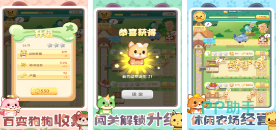 一款拥有卡通渲染风格的模拟经营游戏主要是以萌犬养成作为核心,玩家在小块地块上起步,在完成任务之后就能慢慢的扩张。有23种不一样的小狗模型,有柯基,有哈士奇,而每一种小狗的养成体验是有所不同的。合成系统支持三阶升星,最高就可以解锁SSR级别的形态,所有的进阶路径都无需通过氪金的方式。