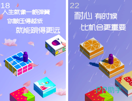 很经典的物理跳跃玩法,用一只手按压蓄力,松开手之后就能够释放,这样的操作还是比较简单的,会比较考验每一个玩家的预判能力。每一局的时间大概是在45秒左右,可以利用空余的时间去体验一下,同时还会支持断点续玩。就算被打断也并不需要重新开始,低端安卓手机也可以自由的运行,玩起来真的是很轻松。