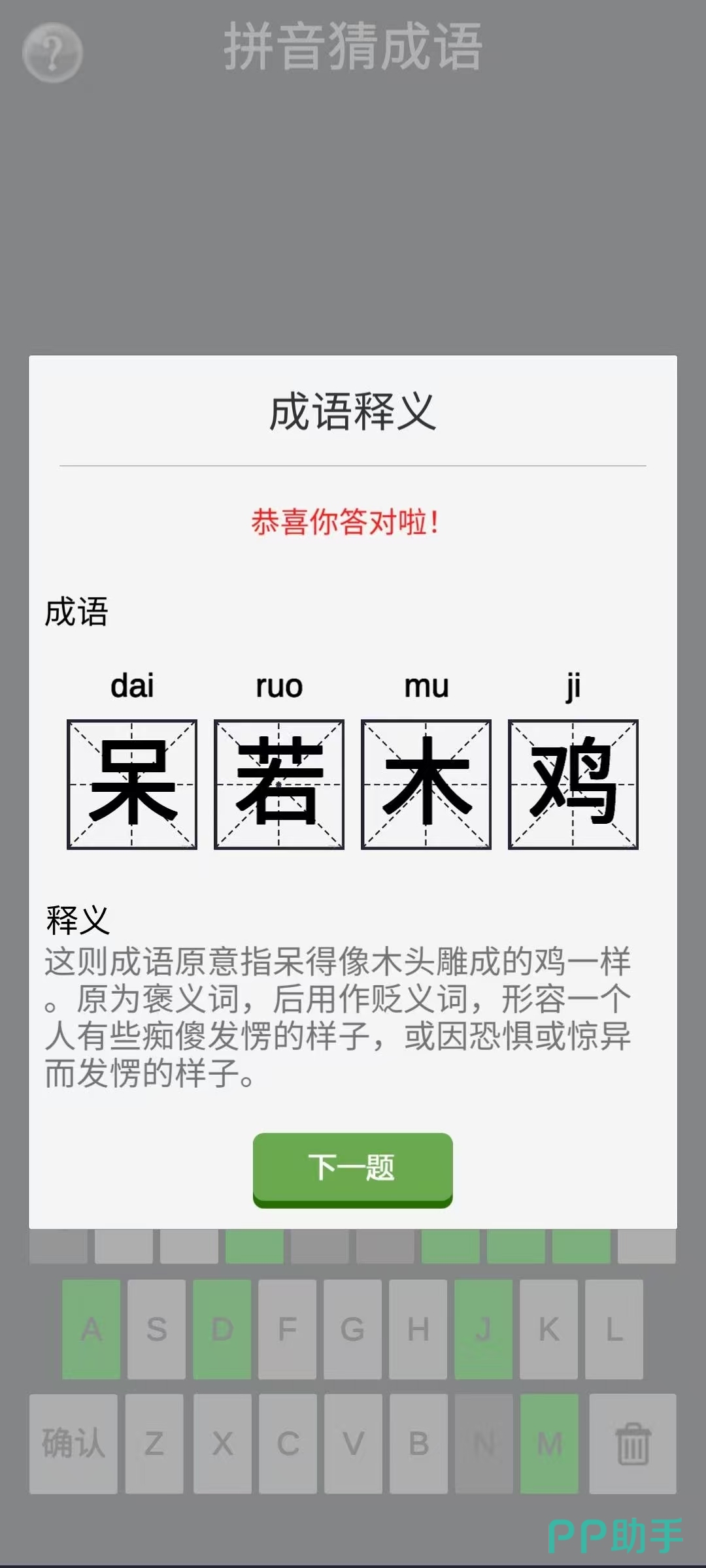 创新融合拼音训练与成语文化学习,每道题目提供部分声母或韵母提示(如“sh__ sh__”),玩家需补全完整拼音并推断对应四字成语。游戏内置权威成语释义、出处说明及例句,支持拼音→汉字→词义三级认知闭环。题库涵盖常用成语超千条,兼顾知识性与思维拓展性,适合希望同步提升语文素养的学习者。