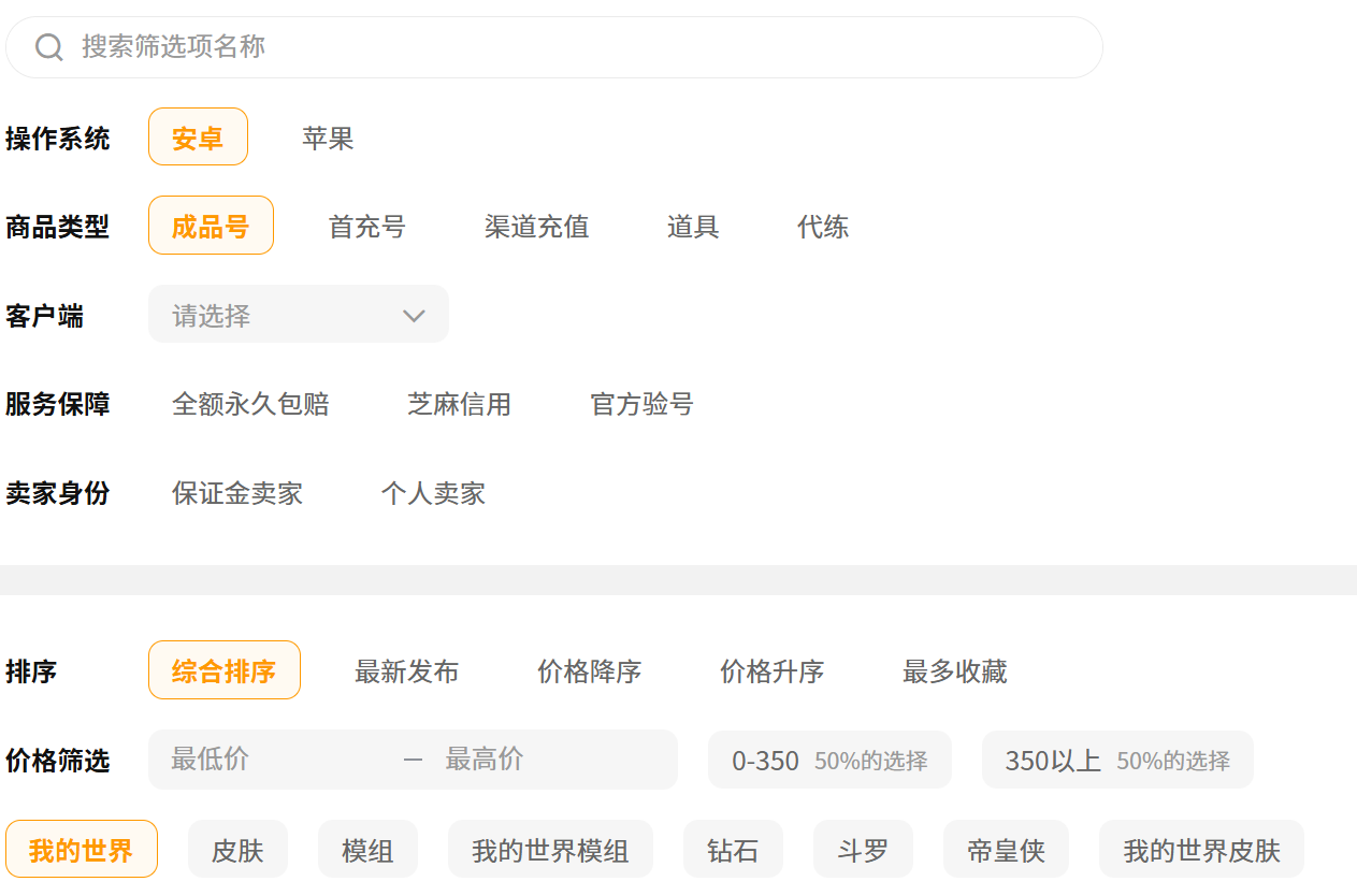 进入交易猫APP后,首页即呈现海量游戏商品资源。平台目前支持超6000款游戏,上架商品总量逾100万件,覆盖从独立小游戏到3A级大作的全品类生态。在顶部搜索框输入“我的世界”,即可直达专属专区。该专区提供多维筛选工具:支持按价格区间、账号等级、皮肤数量、存档完整性、是否含Java版/基岩版权限等条件组合过滤,帮助用户在庞杂库存中快速锁定高匹配度的正版账号。