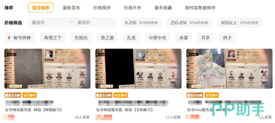 该平台支持第五人格全服系账号交易,涵盖网易官服及主流安卓渠道服(如华为、小米、OPPO等)。需注意:官服账号因数据归属明确、后续更新同步及时,通常定价高于渠道服;若预算有限,渠道服中亦不乏高配号源,且支持二次转售,流通性良好。
