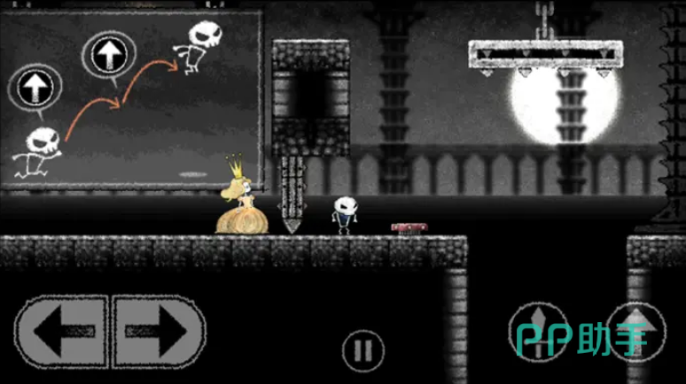 横版平台跳跃玩法,创新引入双形态切换机制——常态下具备基础移动与跳跃能力,进入特定区域后可切换为具备攀爬、滑行或短暂浮空能力的骷髅形态,显著拓展关卡设计维度。全篇共十五章,每章含十个独立关卡,整体难度曲线平缓,后期挑战侧重操作协调性而非惩罚性设计。