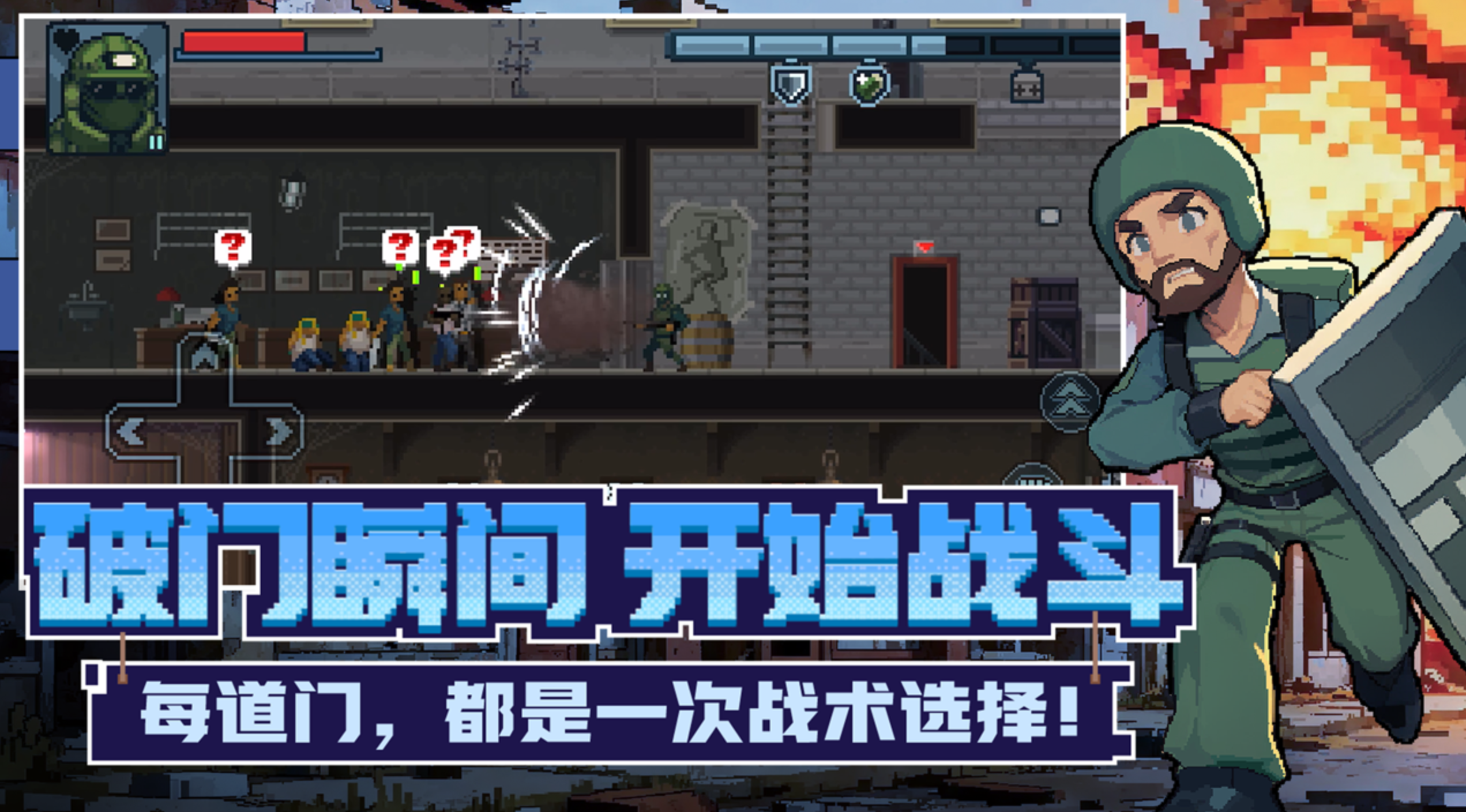 一款以战术拟真为内核的像素风射击作品,背景设定于反恐作战场景。玩家指挥特警小队执行解救人质、拆除爆炸物等高风险任务,战前支持多路径潜入或强攻方案规划。全游戏共设6类职能分明的角色,其技能组合直接影响战术执行效果。装备库涵盖60余种真实系与改装系枪械,支持按关卡需求灵活配置。独创子弹时间机制可在危急时刻延缓战场节奏,辅助精准点射。额外加入僵尸入侵、无尽高塔等拓展模式,延长游戏生命周期。
