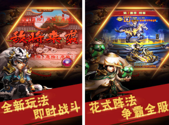 融合卡牌收集与回合制策略玩法的三国题材作品。游戏收录逾百位可养成武将,涵盖魏蜀吴及群雄阵营;战斗节奏明快,支持24小时离线收益。创新引入四队编组系统,降低重复操作负担;玩家可依据兵种克制、技能联动与站位策略,灵活配置主力阵容,在各类PVE副本与跨服竞技场中持续进阶。