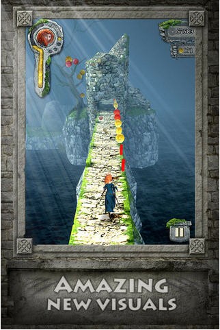 延续了神庙逃亡系列的很多经典,跳跃、滑行,左右转弯的基础操作,在整个3D的环境中驰骋时,很多的金币。在收集后,能够帮助玩家获得飞行翅膀和全新的武器装备。勇敢传说最大的特点就是加入了射箭机制和角色升级系统,获得弓箭后瞄准靶心进行射击将可获得额外的奖励,增加了角色与场景的交互体验。