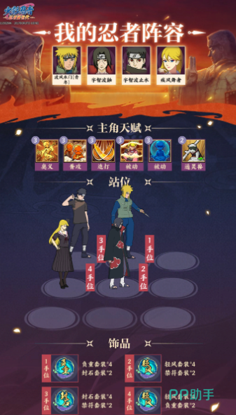 以疾风传主线为叙事骨架,起始于鸣人自妙木山修行归来,终局落于辉夜之战落幕。卡牌系统围绕查克拉属性(火、风、雷、土、水、阴、阳)构建克制关系,强调站位逻辑与连携触发机制。例如“阿斯玛+红”组合可激活“炎遁·炎杀咒印”,“鹿丸+丁次”则解锁“影子绞首术”强化效果。PVE关卡含隐藏成就与难度梯度设计,PVP天梯赛季制保障公平竞争环境。